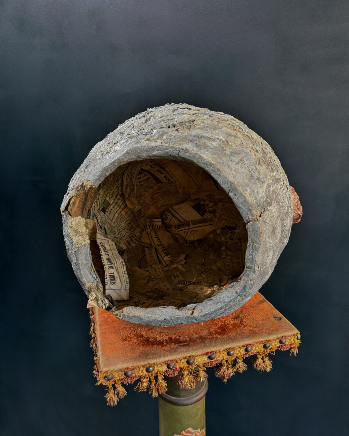 A quite magnificent papier-mâché carnival head as Mr. Smee, Captain Hooks right hand man in Peter Pan. Beautifully displayed on an antique hat stand – French 1960’s.