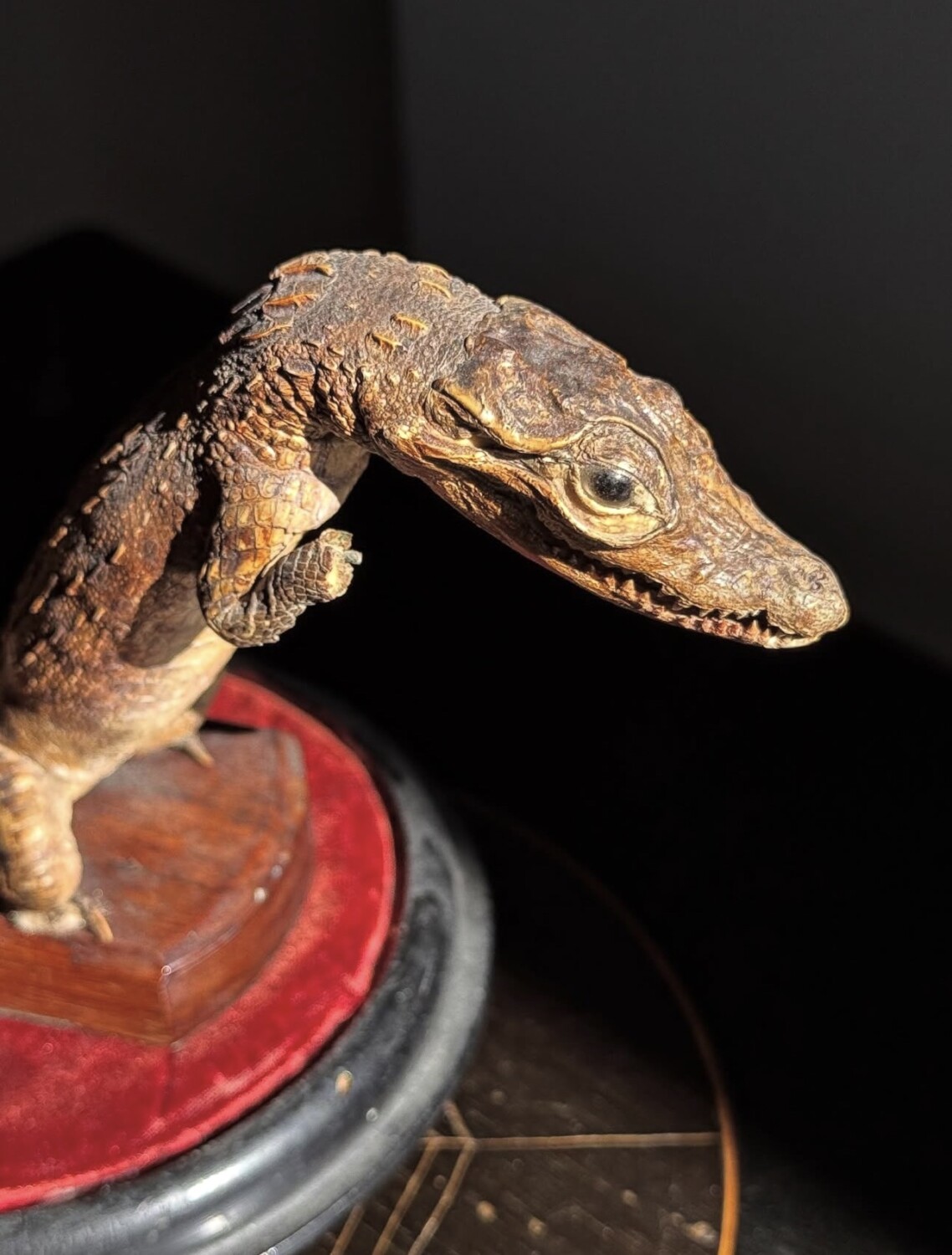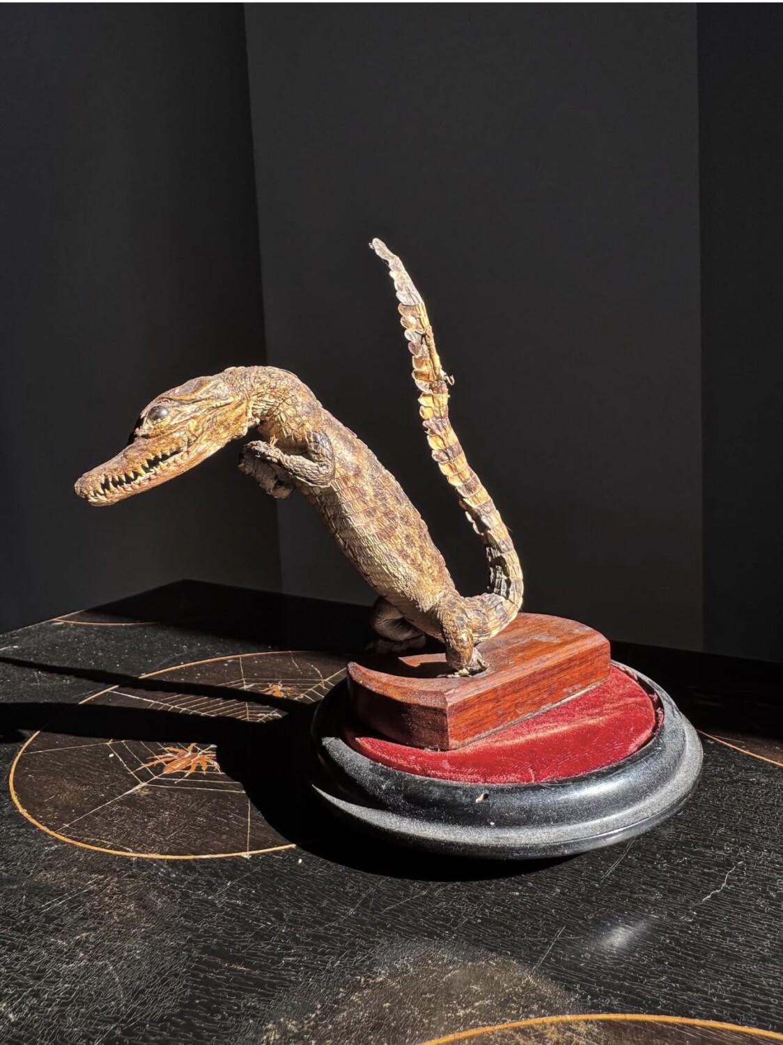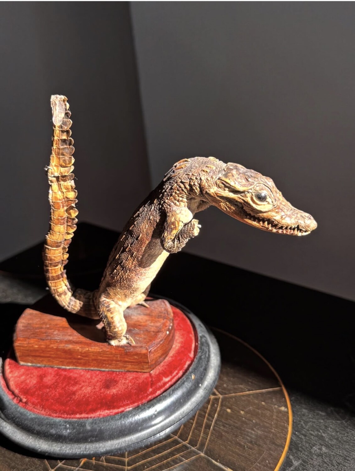 It has some good age and would make an eye-catching cabinet piece or addition to a collection of curiosities. Minor cosmetic wear. The smallest taxidermy croc we’ve seen